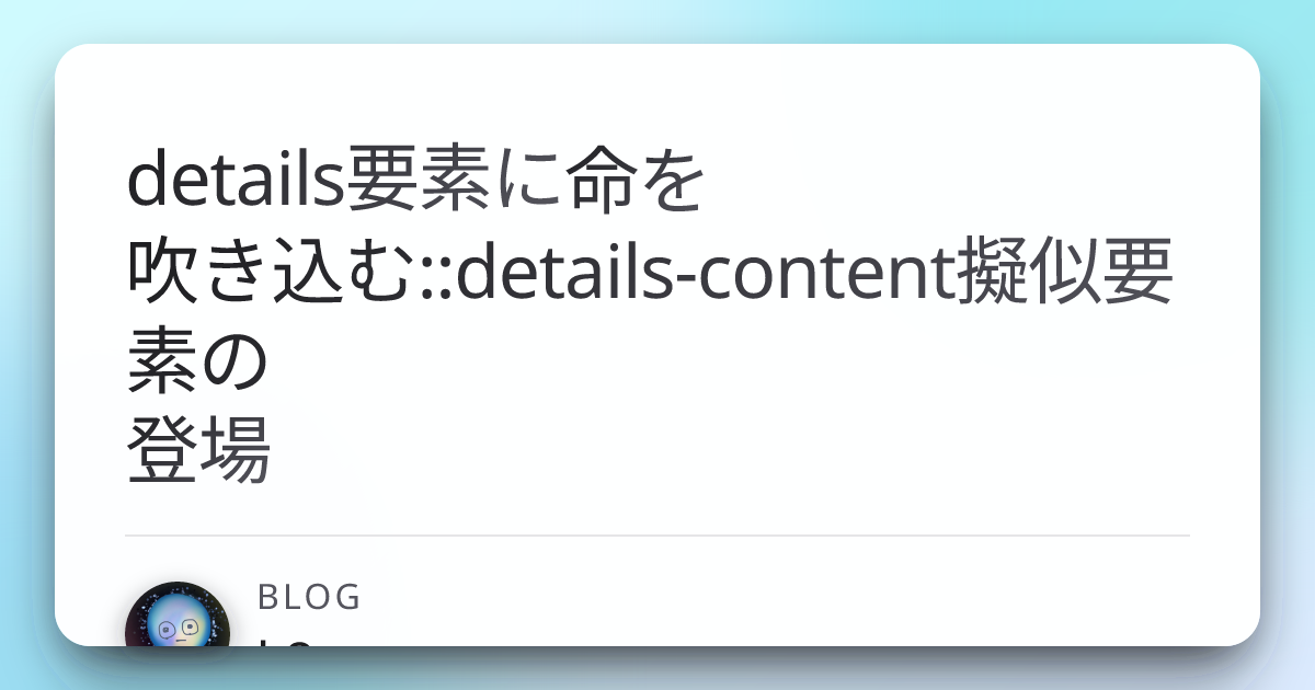 details要素に命を吹き込む::details-content擬似要素の登場 details要素のコンテンツ部分にスタイルを適用できる::details-content擬似要素がBaseline 2025に加わりました。details要素を用いたスタイリングの守備範囲が広がっただけではなく、アニメーションの適用も容易になりました。
